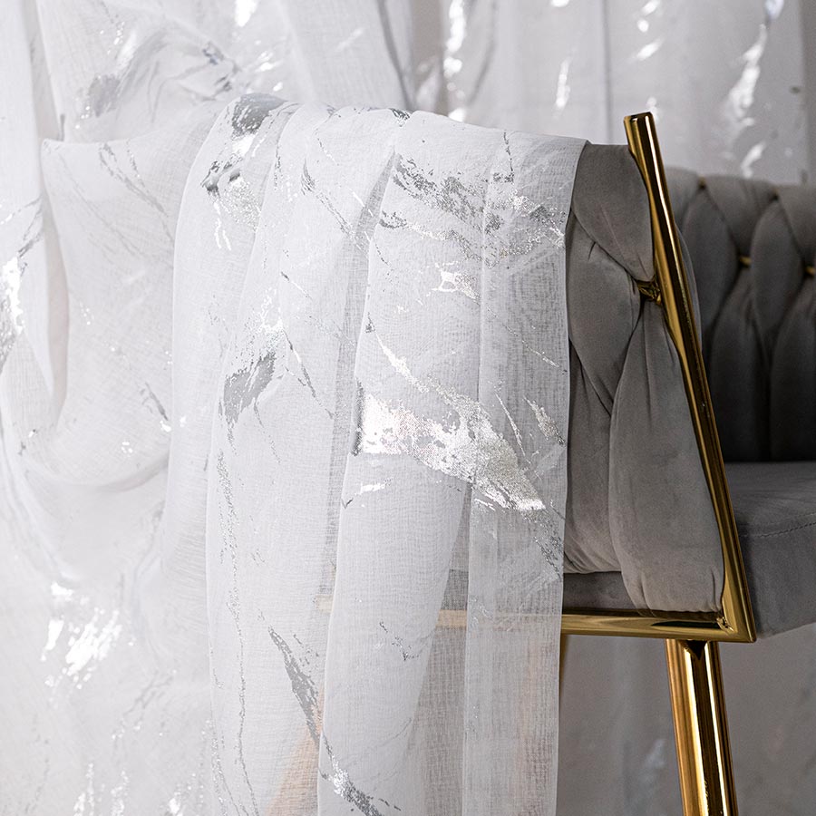 Breng een vleugje elegantie en luxe in uw interieur met deze stijlvolle vitrage uit de Marmer Collectie. Gemaakt van hoogwaardig, lichtdoorlatend materiaal zorgt dit gordijn voor een aangename lichtinval en een luchtige sfeer, terwijl uw privacy behouden blijft. Het subtiele zilver marmer design maakt deze vitrage tot een echte eyecatcher in elke woonruimte.